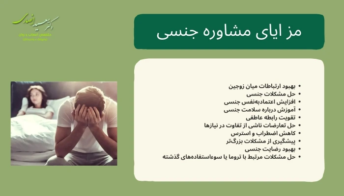مشاوره به افرادی که به اطلاعات دقیق و علمی در مورد رفتارهای جنسی، سلامت جنسی و روشهای ارتباط جنسی نیاز دارند، کمک میکند تا کیفیت تجربه جنسی خود را بهبود بخشند.